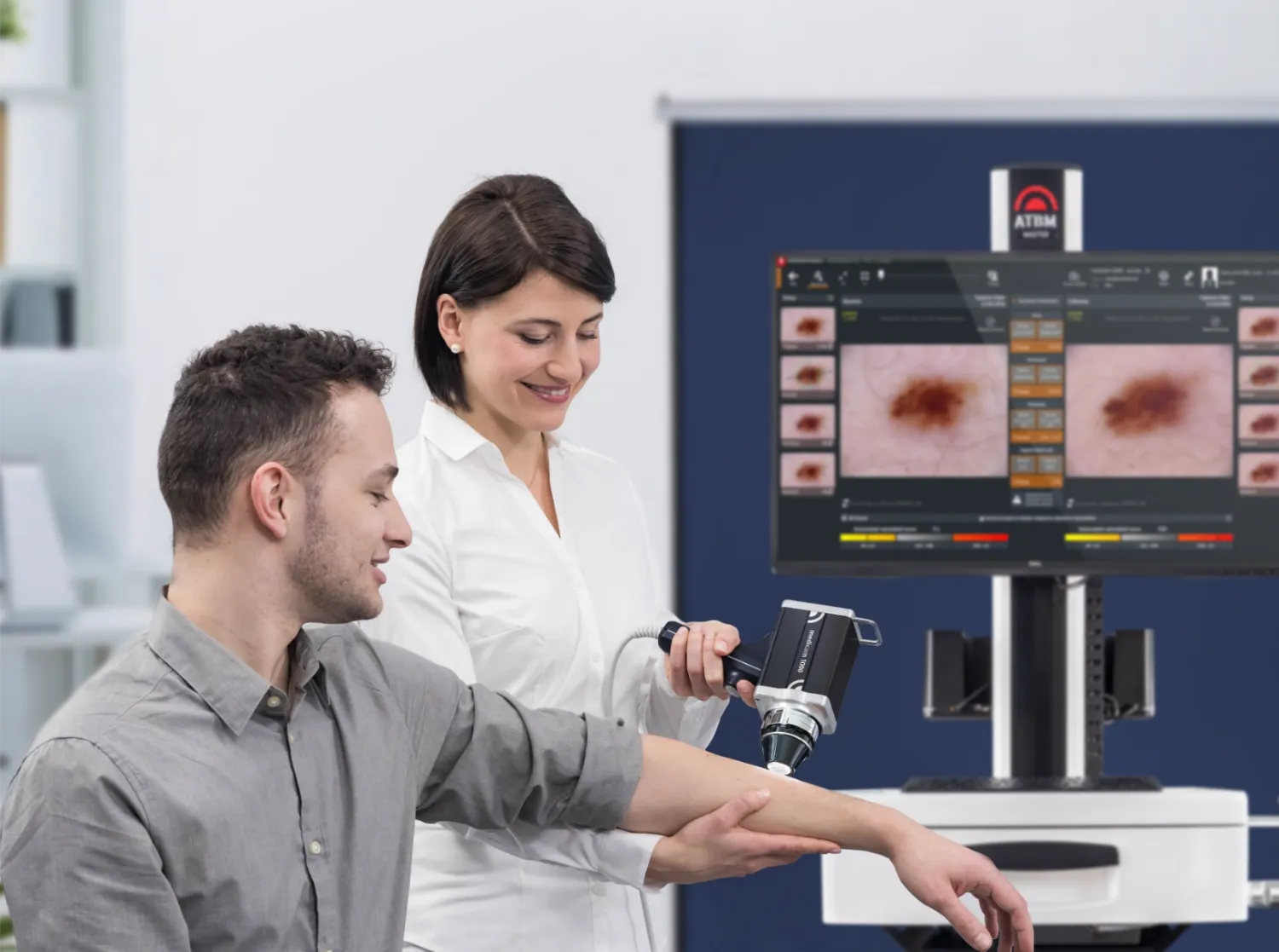 Über zwei Drittel aller Melanome entstehen auf gesunder Haut – nicht nur aus Muttermalen. Deshalb ist eine regelmäßige Ganzkörperkontrolle entscheidend. Mit dem Automatischen Total Body Mapping (ATBM) und dem FotoFinder Hightech-System wird Ihre Haut von Kopf bis Fuß fotografisch erfasst und dokumentiert. Veränderungen lassen sich dank KI-gestützter Analyse sofort erkennen und vergleichen – selbst kleinste Details bleiben nicht unbemerkt.